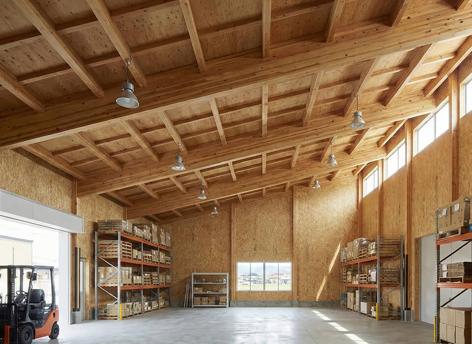 オフィス、商業施設、医療・福祉施設から倉庫まで幅広く対応可能です。 木造は「温かみ」や「環境性能」が求められるオフィスやクリニック、店舗などで特にその価値を発揮し、企業のブランド価値向上に寄与します。また、コストと大空間の両立が求められる倉庫や工場にも対応できます。