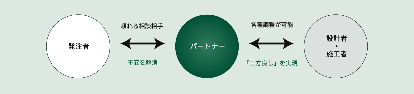 特定の建設会社ありきではなく、プロジェクトの特性に合わせて最適な設計事務所、施工会社をコーディネートします。
