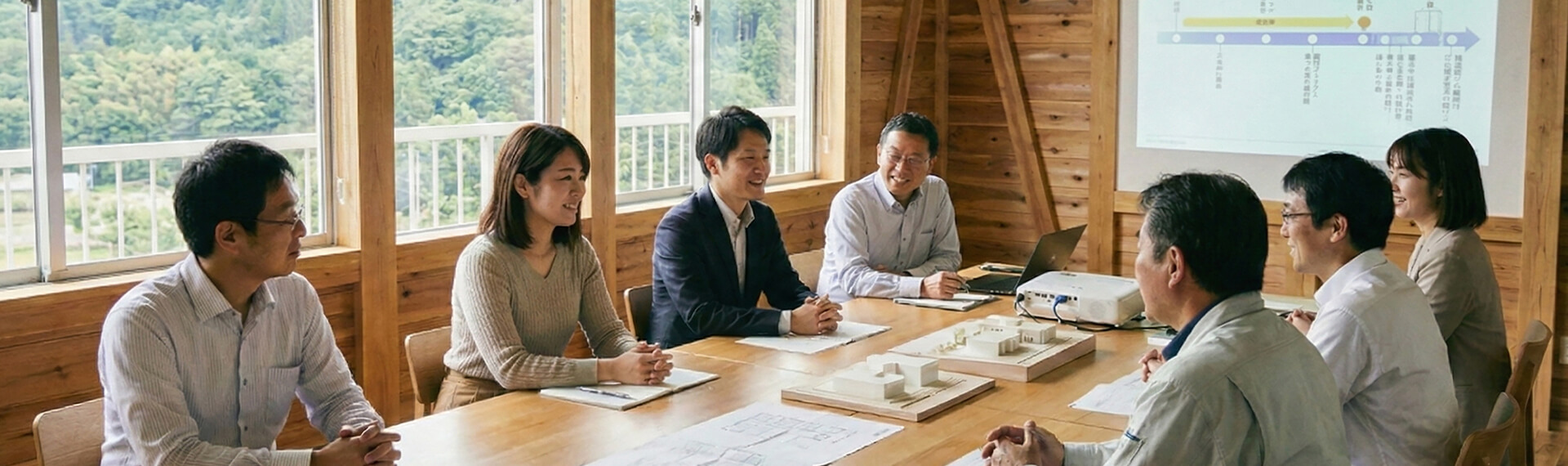 豊富な実績に基づく知見で、在来工法から構造用集成材を用いた金物工法、混構造まで、建物の規模や用途に合わせた最適なチーム(設計者・施工者・専門家)を編成。